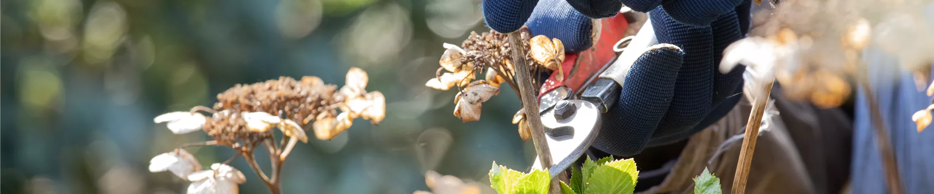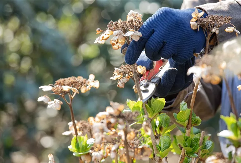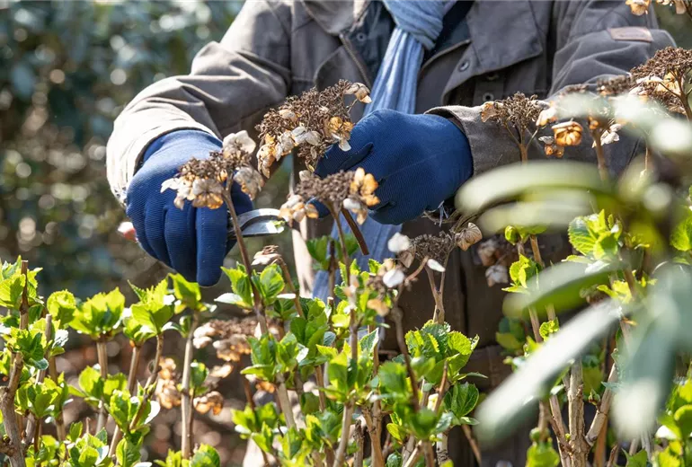 Damit sich viele neue Blüten bilden können, müssen die alten Blütenstände entfernt werden. Das ist vor allem bei den Blütensträuchern wie Hortensien der Fall. Damit die Pflanzen im Frühling so richtig durchstarten können, werden die alten Blütenstände abgeschnitten.