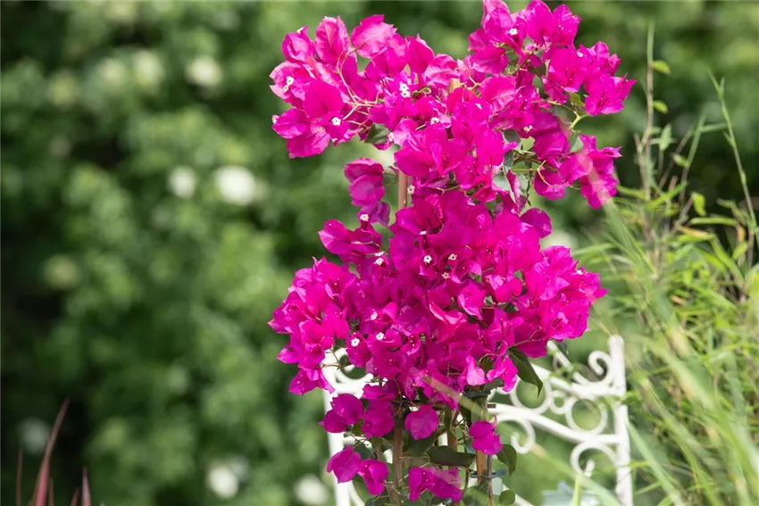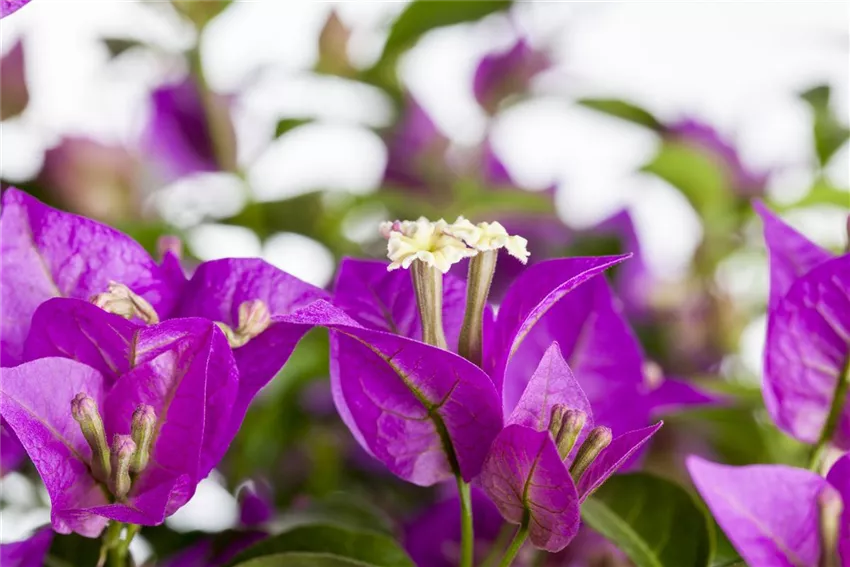 Bougainvillea glabra 'Sanderiana' Die Bougainville oder auf Deutsch Drillingsblume ist vor allem bei unseren europäischen Nachbarn im Mittelmeerraum eine äußerst beliebte Pflanze. Wen wundert es da, dass so mancher die schönsten Urlaubserinnerungen mit diesen prächtig blühenden Gehölzen verbindet und sich gerne die reiche Pracht in seinen Garten holen möchte.