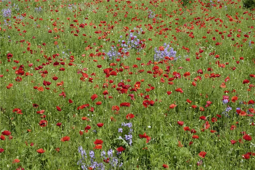 Papaver rhoeas, rot Klatschmohn darf im Garten in keinem Staudenbeet fehlen. Im Naturgarten fügt sich der Klatschmohn zusammen mit anderen Ackerbegleitpflanzen wie Kornblume und Kornrade ein, macht einen natürlichen Eindruck und sorgt für Harmonie im Staudenbeet. Auch für Balkon und Terrasse ist der Klatschmohn geeignet. Da er aber als Ackerwildpflanze eine Wuchshöhe von bis zu 60 Zentimetern erreichen kann, sollte man für Balkon und Terrasse eher auf die neuen Zuchtformen zurückgreifen. Die werden nicht so groß und mittlerweile sind sie auch in den unterschiedlichsten Blütenfarben erhältlich. Ausgesät wird Klatschmohn im März und April direkt ins Freiland. Die Samen vom Klatschmohn sind Lichtkeimer und werden deshalb nur auf die Erde gelegt und leicht angedrückt und nicht mit zusätzlicher Erde bedeckt. Wenn sich der Klatschmohn nach der Blüte selbst aussät, liegen die Samen auch auf der Erde auf und keimen dort. Wenn sich die ersten Jungpflanzen entwickelt haben, kann der Bestand ausgedünnt und die einzelnen Pflanzen mit einem Abstand von 25 Zentimetern gepflanzt werden. Werden die Blütenstände nach der Blüte nicht entfernt, kommt der Klatschmohn im neuen Jahr von selbst wieder.