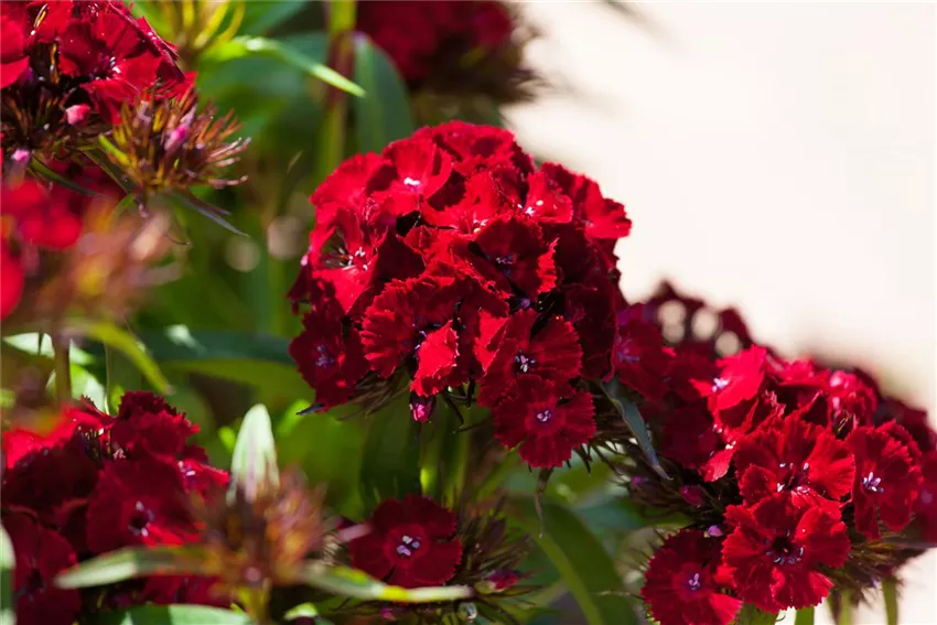 Dianthus barbatus 'Victoria' Die Bartnelke liebt die Sonne. Damit sich die Pflanze im Garten optimal entwickeln kann und prachtvolle Blüten bildet, braucht sie einen vollsonnigen Standort. Während viele andere Pflanzen einen halbschattigen Standort bevorzugen, ist ein solcher Standort für die Bartnelke bereits zu dunkel und sonnenarm. In einem halbschattigen Standort wächst die Bartnelke kaum und bildet nur sehr wenig Blüten aus. Der Sonnenentzug würde aber für die Bartnelke im Garten weitere Folgen haben: ohne Sonnenlicht kann die Pflanze keine Widerstandskräfte entwickeln und wäre dadurch anfälliger für Schädlinge und Krankheiten.