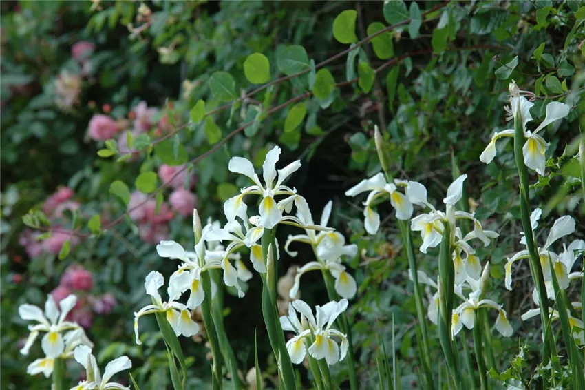 Iris setosa Sie gehört zu den beliebtesten Gartenbewohnern. Nicht umsonst erhielt die Iris mit ihrem spektakulären Flor die Auszeichnung „Staude des Jahres 2016“. Die einzeln stehenden Blüten präsentieren sich mit sechs Blättern. Die eine Hälfte hängt lässig-elegant herunter, die andere strebt in die Höhe, meistens in verschiedenen Farben. Das ergibt eine Bandbreite an Flair. Die Iris kann sich nobel in blauen Grundtönen zeigen oder strahlend in der Farbpalette von Gelb bis Orange. Im weißen Outfit passt sie mit ihrer klaren Ausstrahlung wunderbar in ein reinweißes Beet oder ergänzt den Landhausstil.