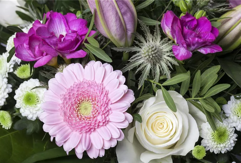 Freesien sind Knollenpflanzen aus Südafrika. Es gibt insgesamt 16 Arten mit mehr als 300 Sorten, deren Ansprüche an den Lebensraum stark variieren. Während die einen sandige Böden im Tiefland akzeptieren, leben die anderen im Gebirge. Zwischen vier und zehn trichterförmige Blüten entwickeln sich an einer Seite des Stängels. Manche Arten tragen gefüllte Blüten an mehr als drei Blütenstängeln pro Pflanze. Die Bandbreite an Farben ist beinahe unerschöpflich und sogar mehrfarbige Blüten sind keine Seltenheit. Das Schwertliliengewächs, das symbolisch für die Unschuld steht, ist ein wahrer Hingucker, der auch im Duftgarten eine gute Figur macht. Darüber hinaus sind Freesien dank ihrer anmutigen Figur und dem betörenden Duft als Schnittblumen beliebt.