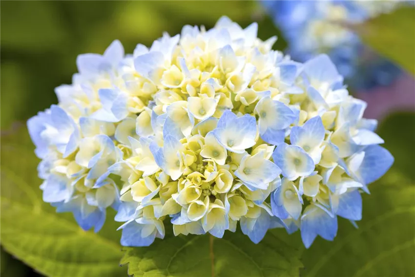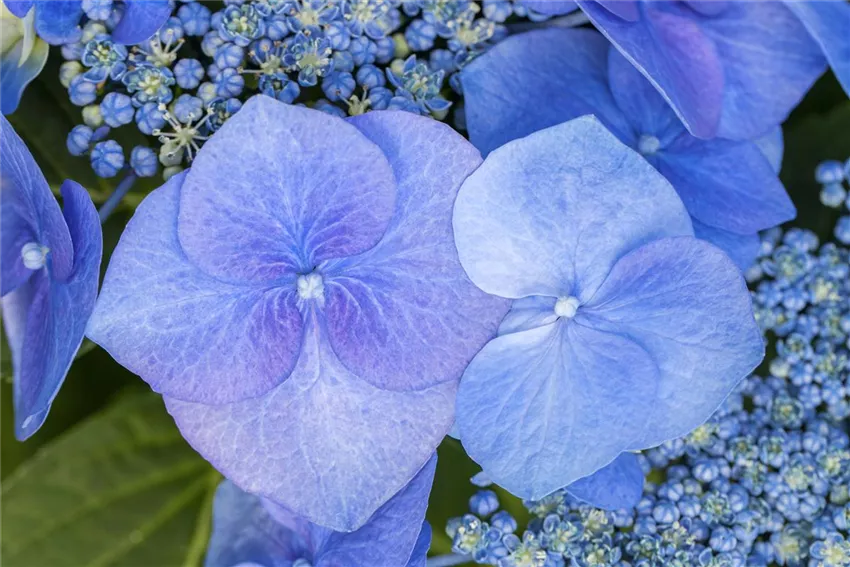 Hydrangea macrophylla 'Blaumeise' Unter den Hortensienarten ist die Bauern- oder Gartenhortensie in deutschen Gärten besonders beliebt. Ihr schirmartiger Flor erscheint auf Stängeln mit bis zu zwei Metern Höhe. Die durstige Zimmer- und Beetpflanze braucht mindestens Halbschatten, Mittagssonne schadet ihr. Sie blüht in Weiß und Rosa, das sich bei saurer Erde in Blau verwandelt. Diese Wandlung vollzieht auch die filigrane Tellerhortensie. Ihr namensgerechter flacher, tellerartiger Doldenflor zeigt sich in den Farben Weiß, Blau, Rot und Rosa. Viele Blüten erscheinen im bicoloren Outfit. Die schattenliebende Pflanze begnügt sich mit einem Meter Höhe. Beide Hortensienarten vervollständigen den Bauerngarten und sind perfekt für den Naturgarten geeignet.