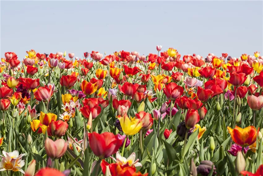 Tulipa Wenn Sie Tulpen im Staudenbeet pflanzen wollen, wählen Sie bis zu 20 Blumenzwiebeln, die Sie nach ihrer Blütezeit staffeln. Auch eine Kombination nach Farben bietet sich bei der vielfältigen Blume an. Schwarze Tulpen sind immer ein Hingucker! Wenn Sie die dunklen Tulpen neben helle Blüten pflanzen, fallen sie besonders schön auf. Dabei können Sie entweder auf andere Tulpenfarben zurückgreifen oder andere Blumen wählen. Als Pflanzpartner bieten sich andere Frühblüher wie Hyazinthen, Vergissmeinnicht oder Narzissen an. Aber auch zwischen Rosen machen Tulpen eine gute Figur. Für besonders kräftige Farben können Sie Tulpen düngen. Im Herbst reichern Sie den Boden mit Kompost an, im Frühjahr gönnen Sie den Blumen vor der Blüte etwas Flüssigdünger. Viel mehr Pflege braucht es aber gar nicht für die volle Blütenpracht.